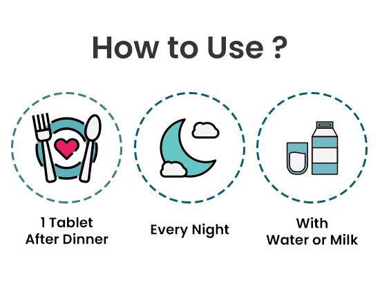 रोजाना 1 गोली खाना खाने के 30 मिनट बाद पानी या दूध के साथ